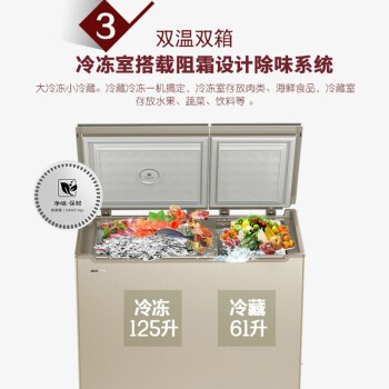 澳柯玛/AUCMA BCD-186CGEX冷藏柜小型家用冰柜商用冷柜双温冷冻 钢化玻璃面板一年质保